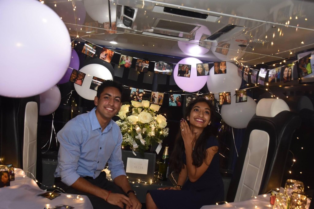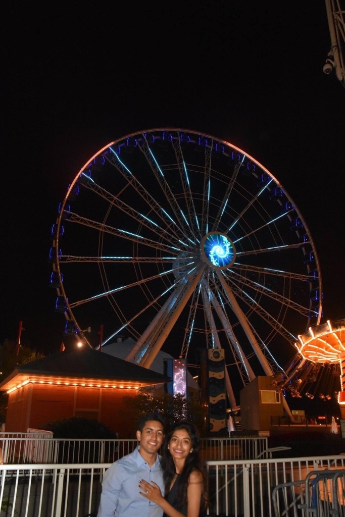 On August 26,2016 the love of my life officially asked me to marry him. Although we committed to each other in the Indian tradition, he wanted to also uphold the American tradition of proposing. What I thought was a night out with my “person” turned out to be the most magical night of my life. Walking into a gondola on the Ferris wheel in navy pier filled with pictures, lights, flowers, and a beautiful ring made me feel like the luckiest girl in the world. Every detail was thought out, the colors, music, location and all the people made it the perfect fairytale proposal. I was expecting a proposal, however, when Rajan got down on one knee and told me to look outside and I saw both of our families holding a huge sign saying “say yes” I couldn’t control my tears. My life seemed like a fairytale and all I felt was love.